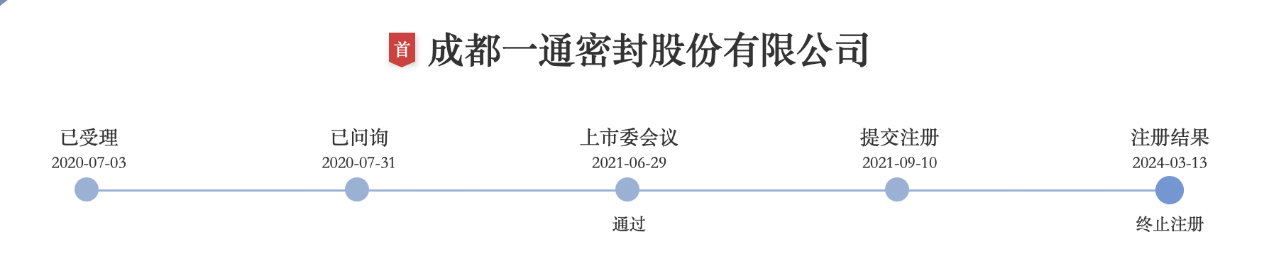 此外,成都一通密封股份有限公司(简称“一通密封”)是唯一一家已经过会进入注册阶段但折戟的公司。