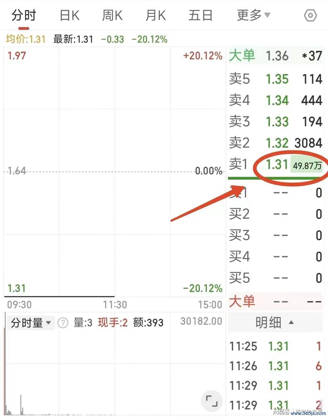 而且不仅仅是股价跌幅很大,直到午盘收盘都还有49万的封单,说明场内股民出来的意愿很强烈,都愿意在跌停板低价出局。
