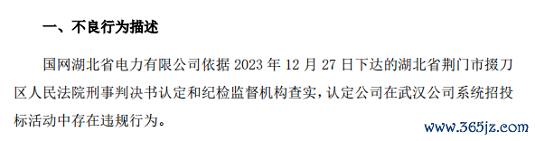 依据2023年12月27日下达的湖北省荆门市掇刀区人民法院刑事判决书认定和纪检监督机构查实,国网湖北公司认定鼎信通讯在武汉公司系统招投标活动中存在违规行为。