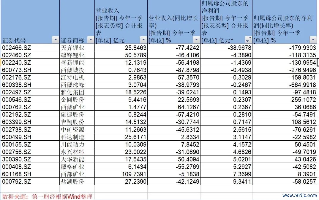 锂价跌破10万元,锂矿股上市公司一季度业绩暗淡。